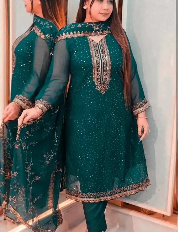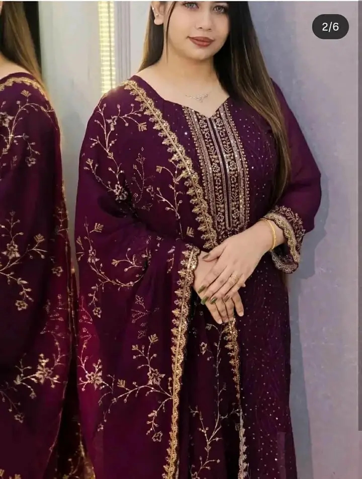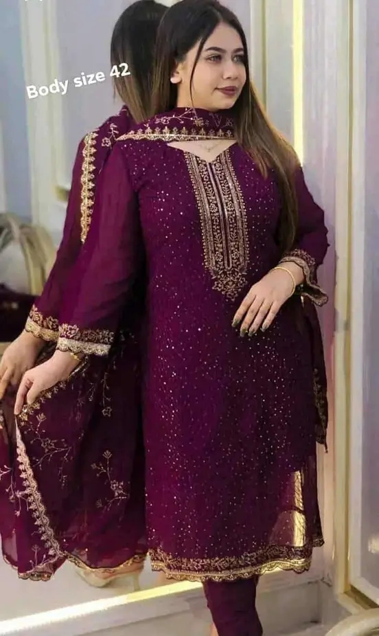 পাকিস্তানি ক্রেপট চেনোন জর্জেট থ্রী পিস