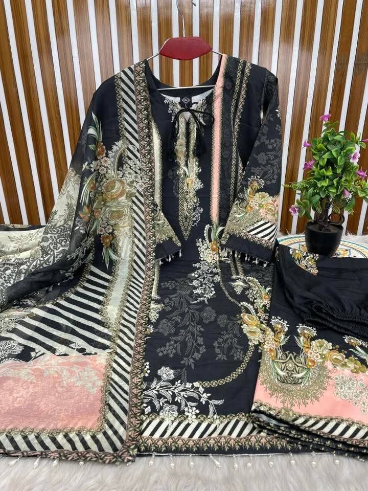 ডিজিটাল প্রিন্টের লেস ওয়ার্ক ডিজাইনের রেডিমেড থ্রি পিস