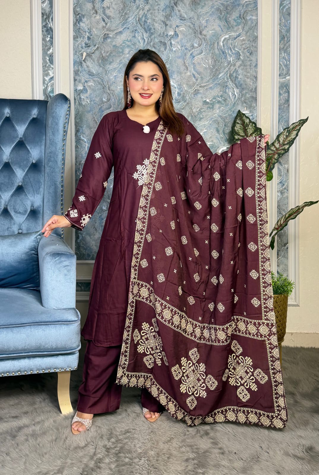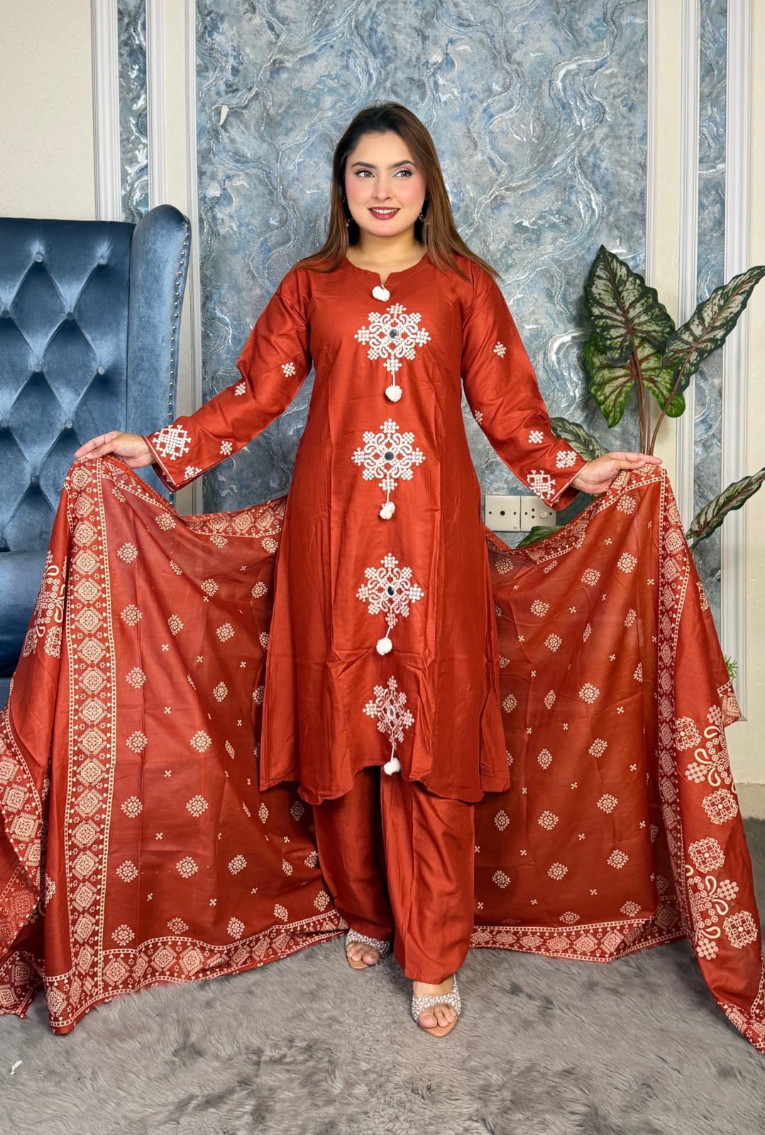 Embroidery Three Piece Set