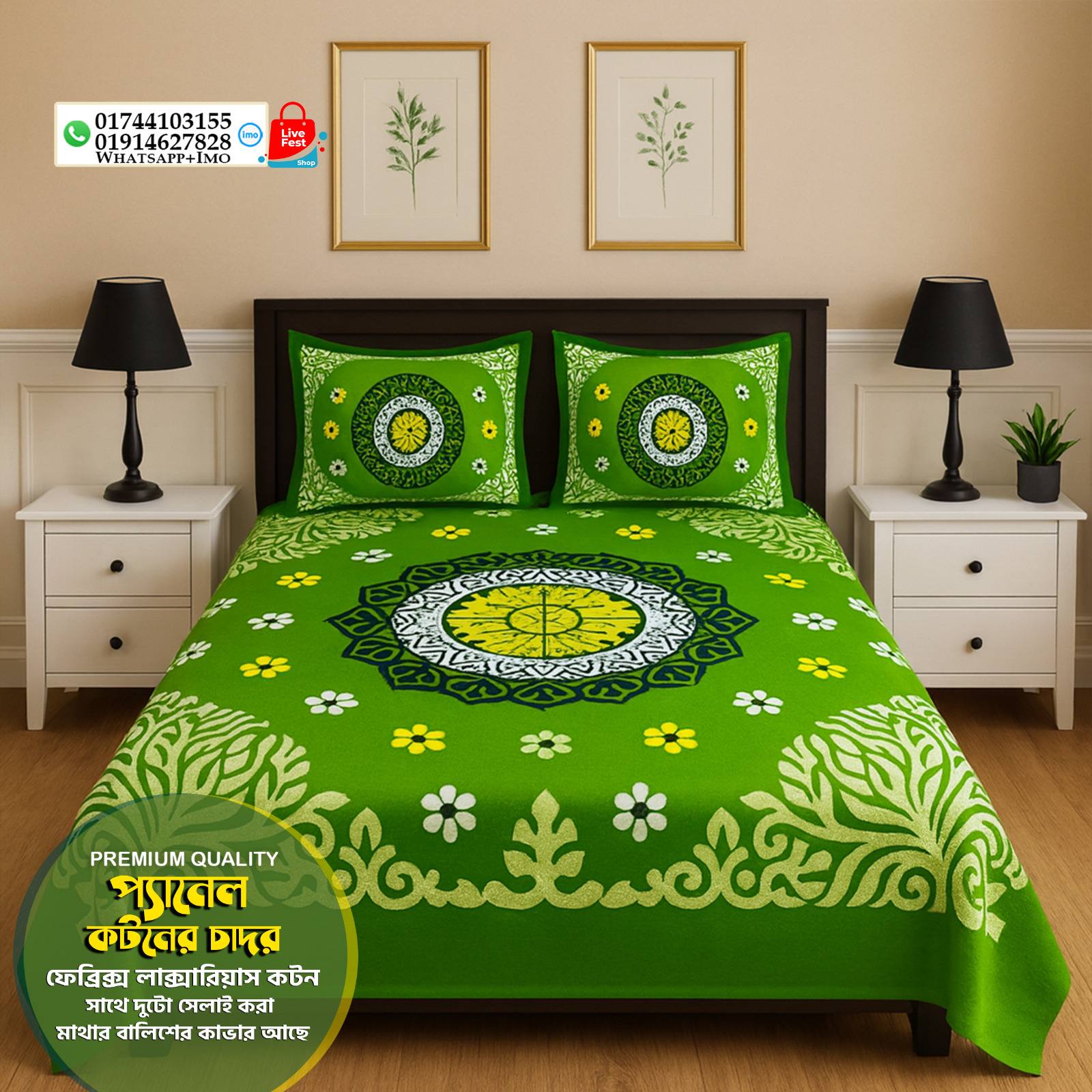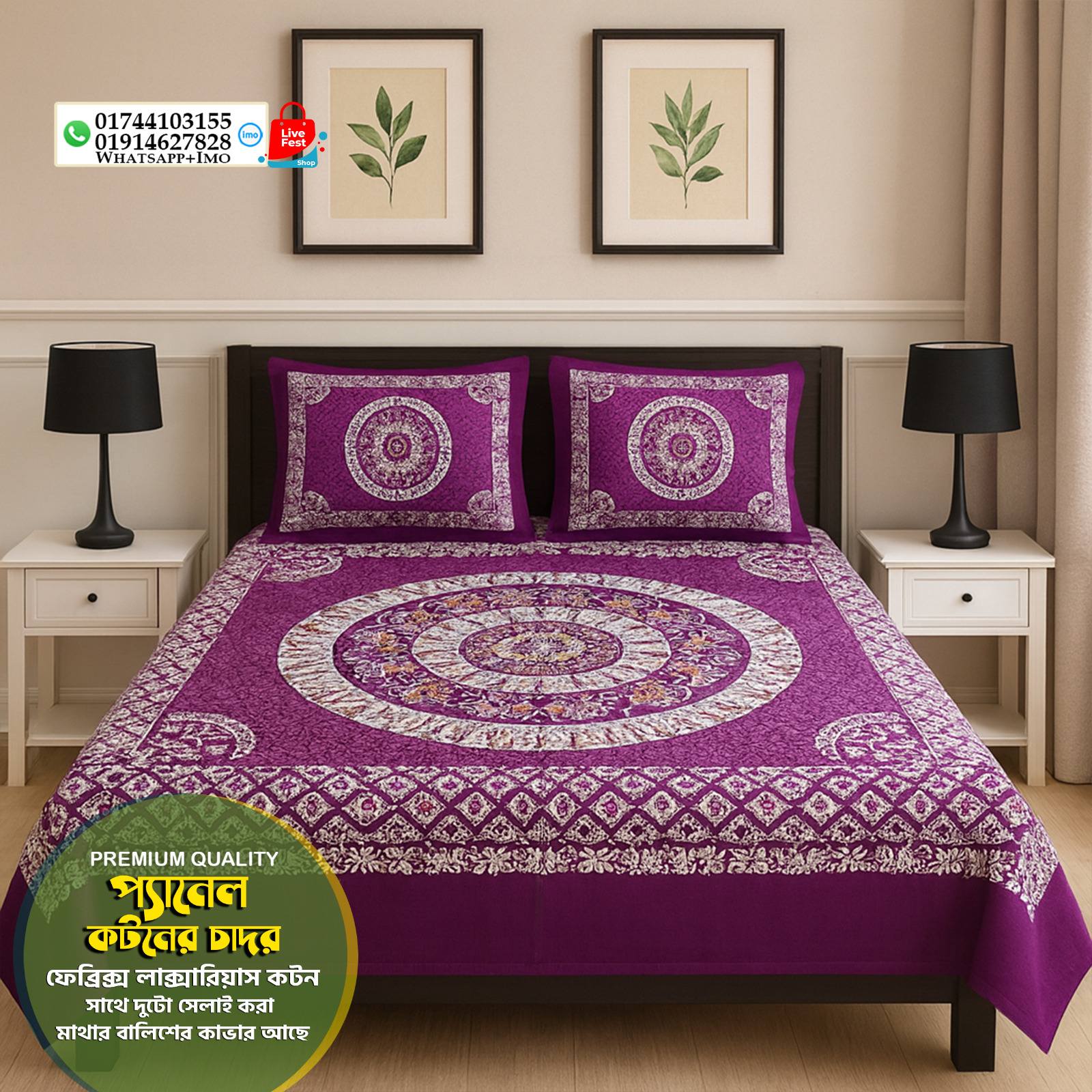 প্যানেল কটন কাপড়ের বিছানার চাদর কিং সাইজ