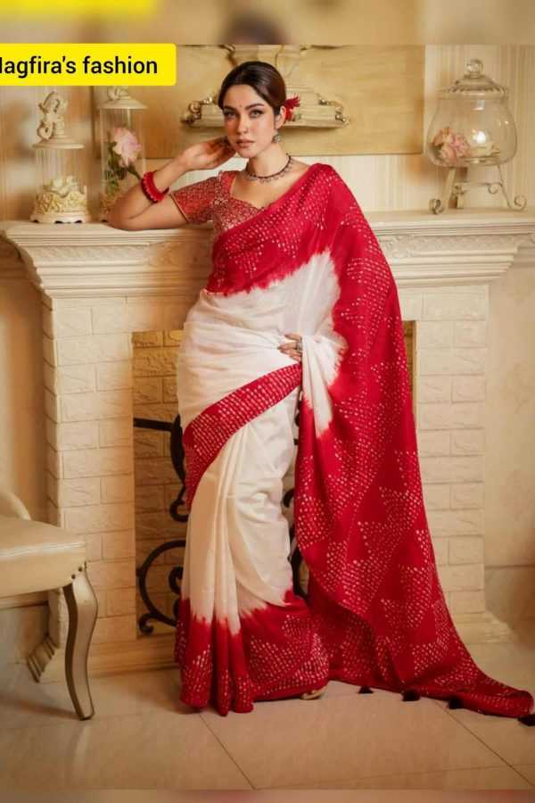 Home Fashion Women's Fashion Sarees বাটিক সিল্ক শাড়ী রেড