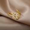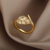 Home Jewellery 18K Gold-Plated Full Diamond Luxury Non-Fading Open Ring for Women Zircon Leaf Ring