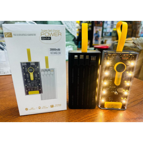 20000mAh Transparent Power Bank Portable 22.5W Fast Charging , PD 22W External Battery Charger Powerbank