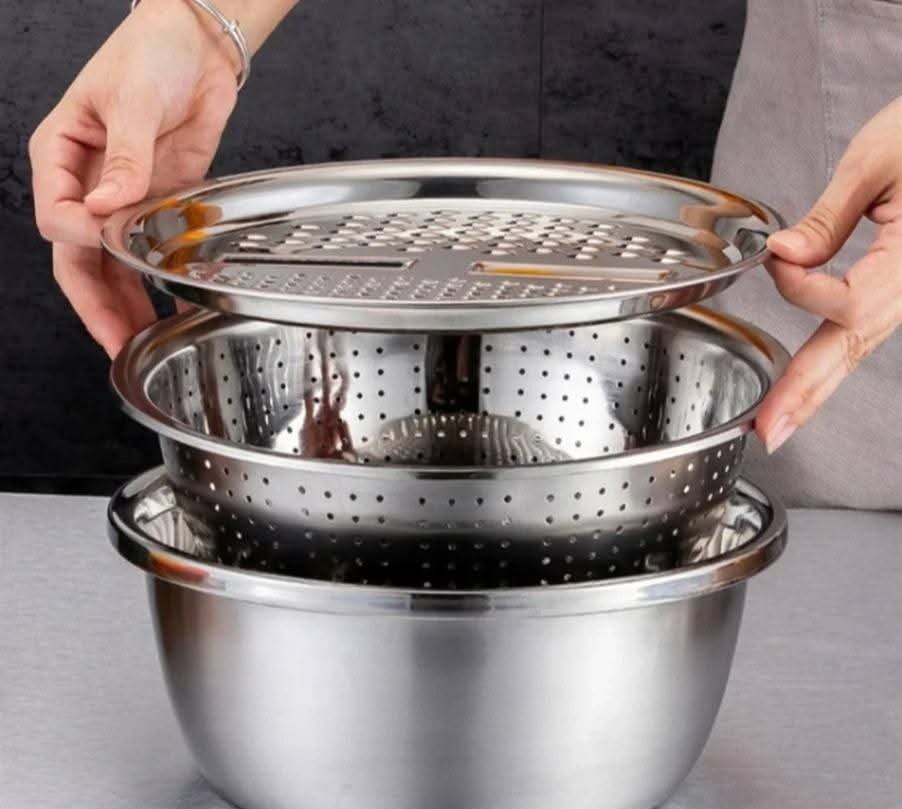 3 In 1 Multifunctional Stainless Steel Basin With Vegetable Cutter