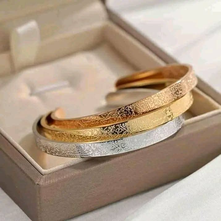 Ayatul Kursi Stainless Steel Cuff Bracelet Arabic Islamic Bracelet for Men and Women