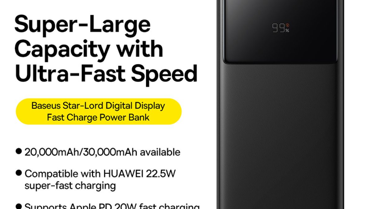 Baseus Bipow 30000mAh 15W Power Bank – Digital Display, Dual Input, Triple Output, Two-Way Fast Charging