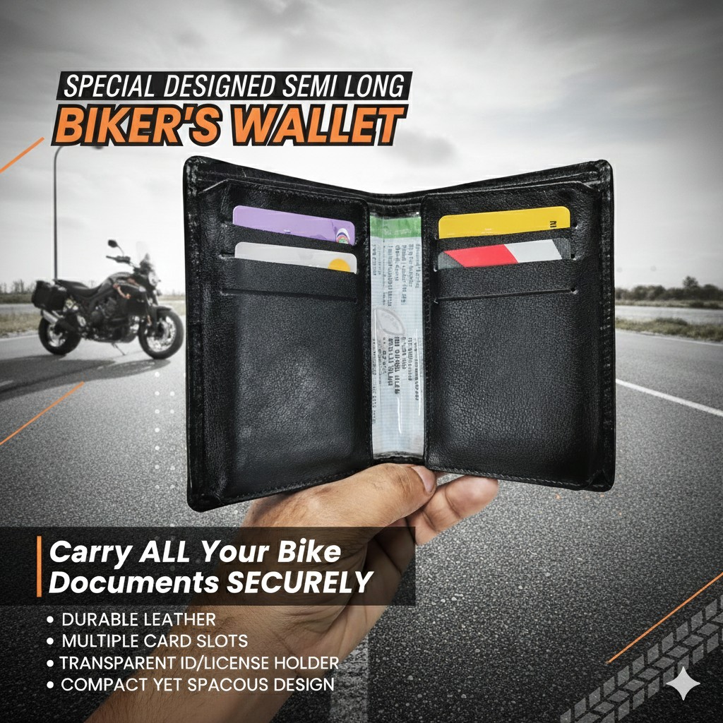 Bikers semi long wallet with document holder