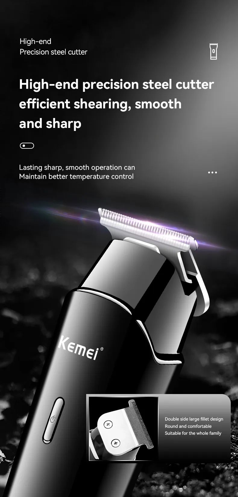 Kemei KM-1113 Professional Hair & Beard Trimmer with LCD Display – 1200mAh Battery, Stainless Steel Blade