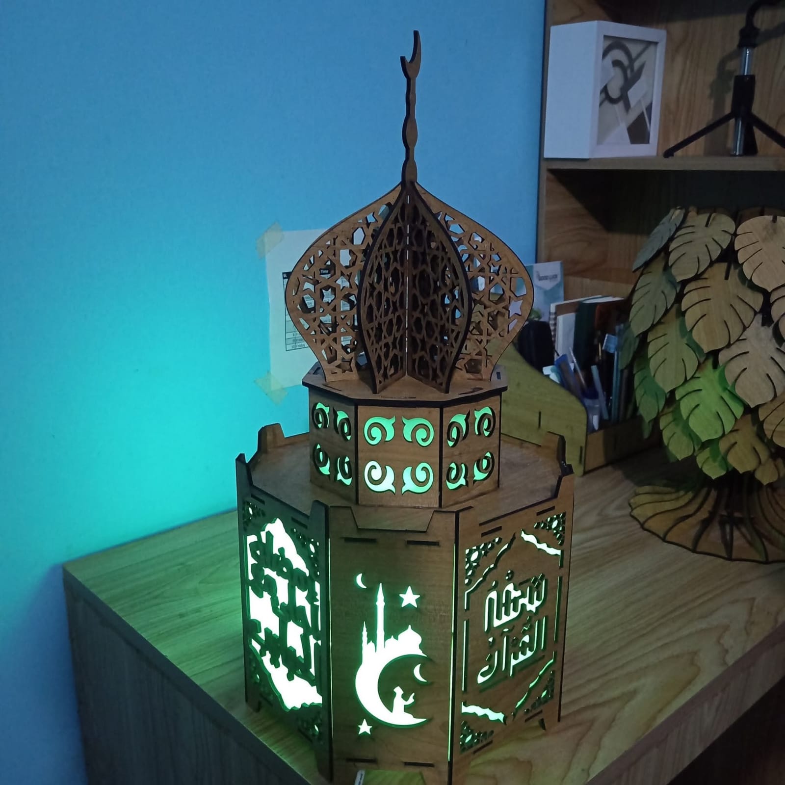 Laser Cut Wooden Ramadan Kareem Lantern LED Light Lamp