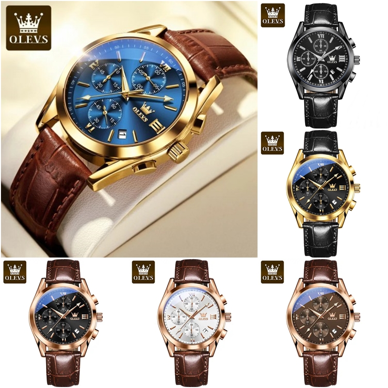 Olevs 2872 Leather Analog quartz fashionable watch for men