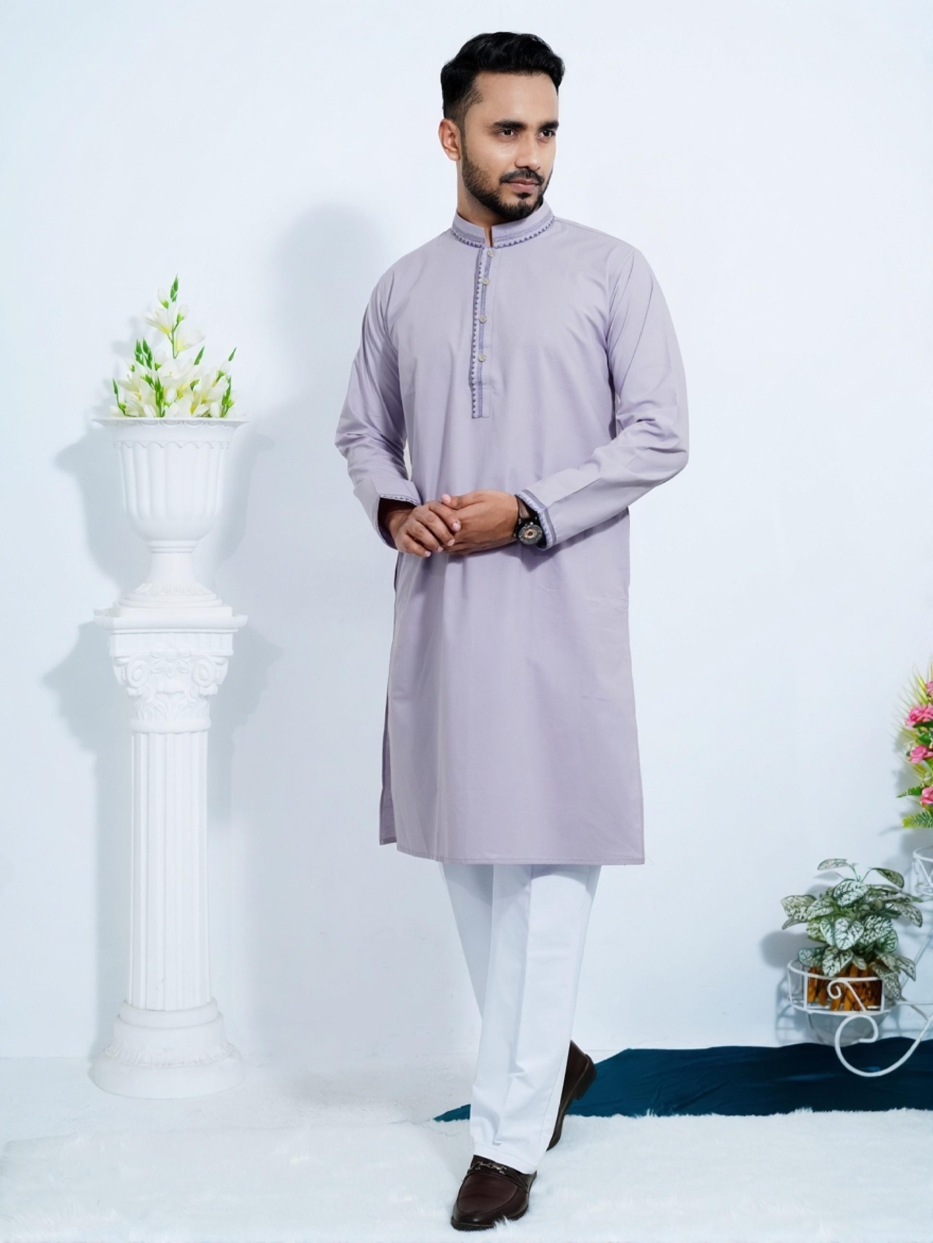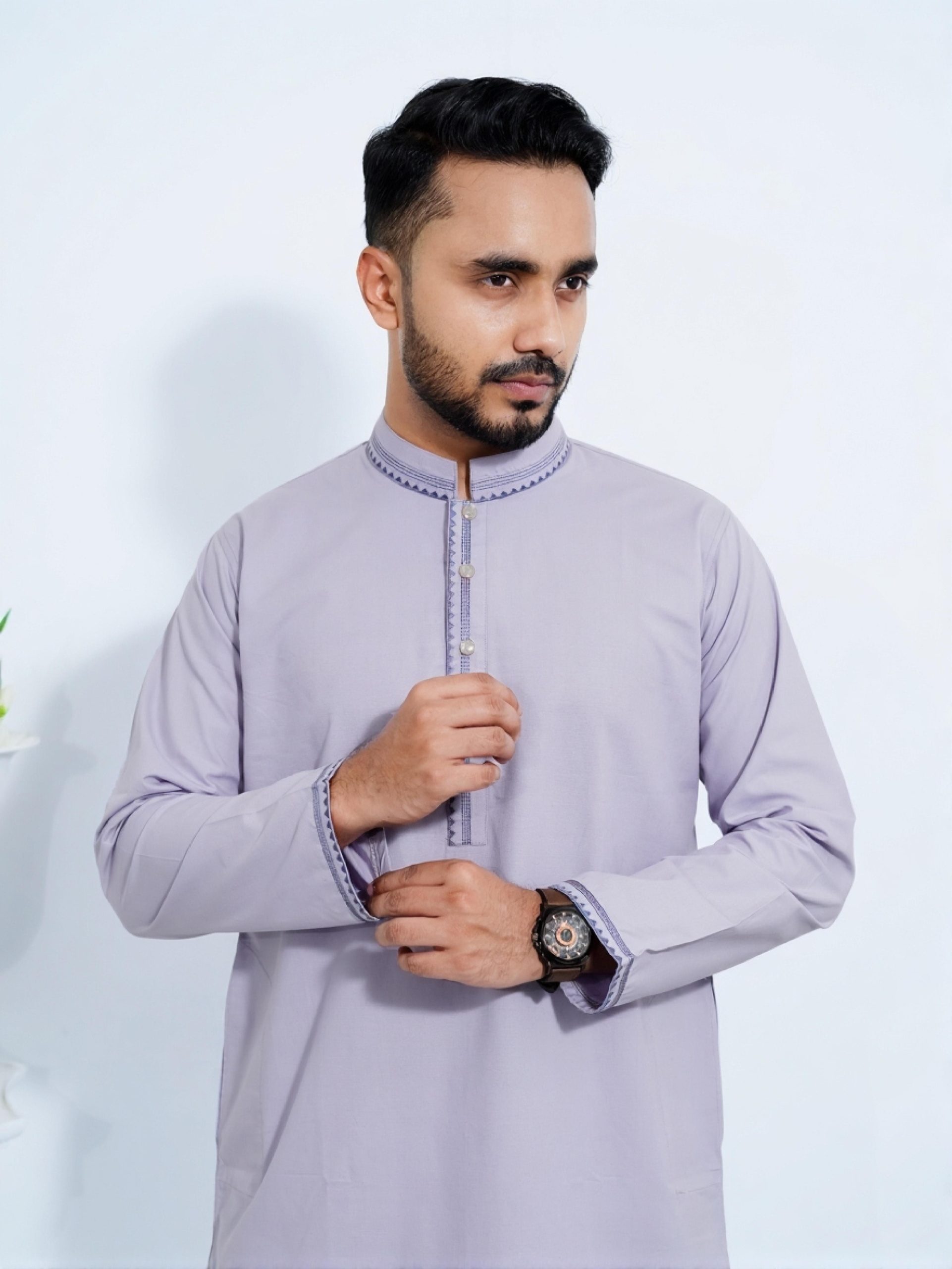 Pure Slub Cotton Panjabi – Purple Grey Color – পুরুষদের পাঞ্জাবি – পারপল গ্রে কালার