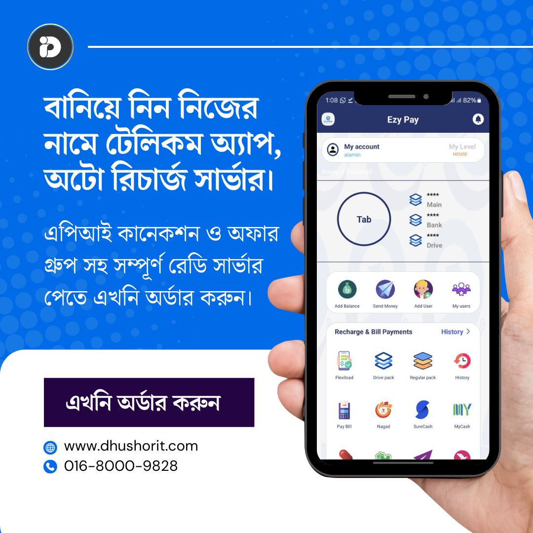 Home Online Services !Recharge App Auto System API Server or Telecom SIM