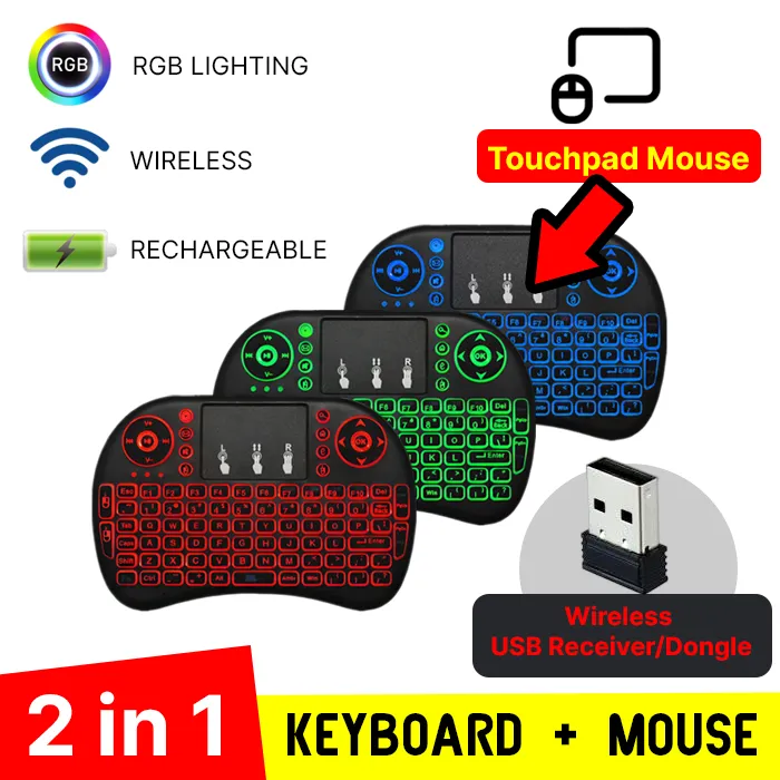 Home Accessories RII i8 RGB Backlit Mini Wireless Gaming Keyboard with Touchpad & Mouse Combo