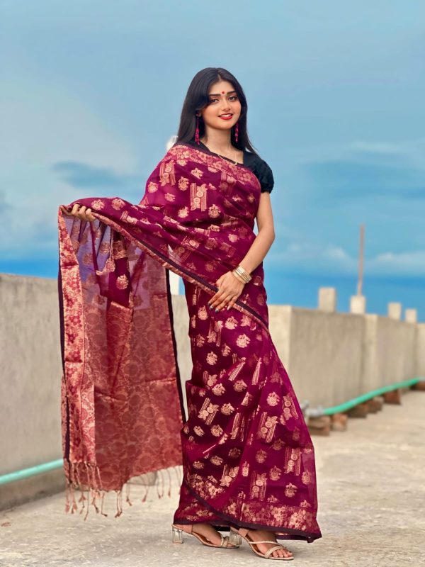 হাফসিল্ক জবা পাইর বুটি জামদানি শাড়ী | Jamdani saree | Sari