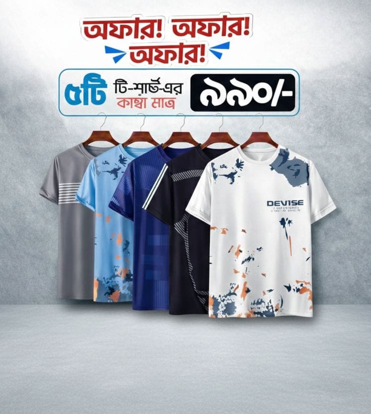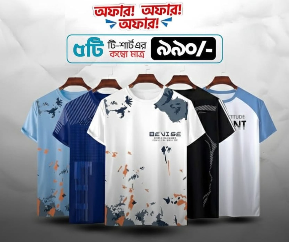 Stylish & Comfortable Sports T-Shirt 5 Pcs Combo