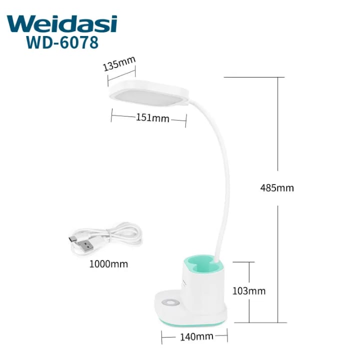 Weidasi WD-6078 Rechargeable LED Desk Lamp (Pen Holder + Touch Control)